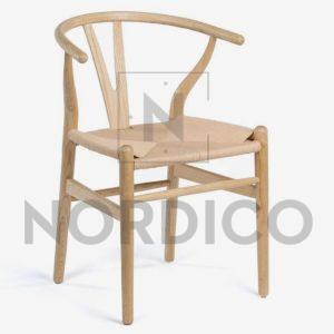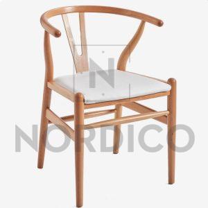 Silla Wishbone Madera Natural Con asiento en Cuero Sintetico